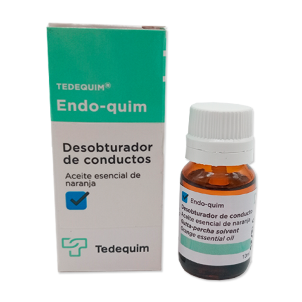 El retratamiento endodóntico requiere la remoción mecánica con instrumentos y esta tarea se facilita con la ayuda del Desobturador de Conductos Endo-quim TEDEQUIM® Aceite Esencial de Naranja para disolver la gutapercha y los selladores.